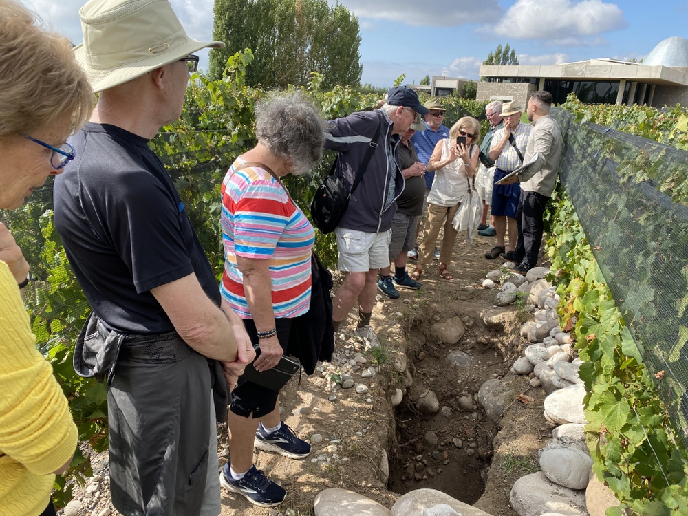 Day 10: Uco Valley -Saturday After breakfast we head south to San Carlos to visit the Zuccardi Uco Valley winery. This winery opened a few years ago and has a novel design. Most of the fermentation and storage vessels are made from concrete and are close in shape to that of an egg.